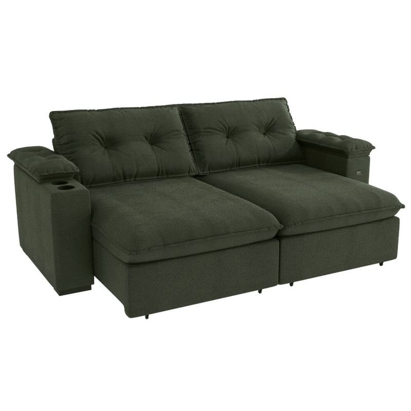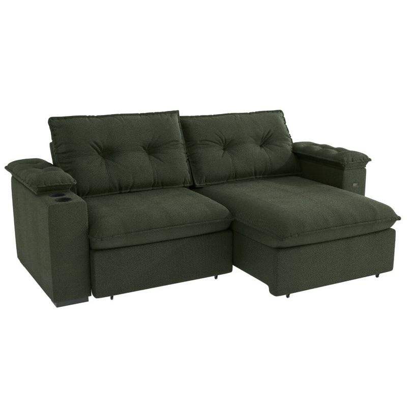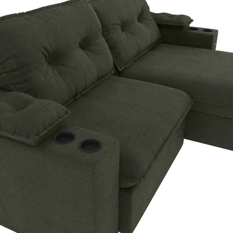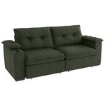 O design moderno em suede mescla verde adiciona um toque de sofisticação e personalidade ao ambiente. Mas o grande diferencial é a funcionalidade: este estofado vem com um prático porta-copos, ideal para seus momentos de relaxamento, seja assistindo a um filme ou lendo um livro.