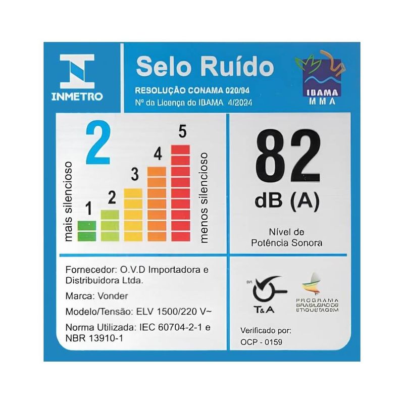 Produto com certificação Compulsória, conforme Portaria Inmetro n° 148 de 28/03/2022 e normas ABNT NBR NM 60335-1 e IEC 60335-2-2 com foco nos requisitos de segurança Certificado por Organismo de Certificação de Produto acreditado pelo Inmetro.