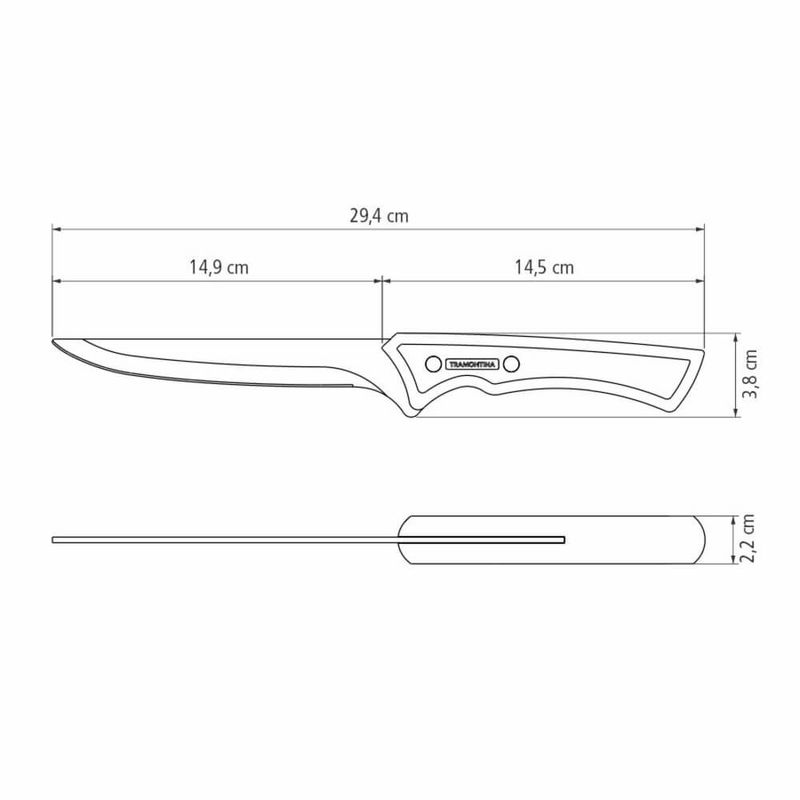 Para preparar e limpar a carne para o seu churrasco, a faca para desossar Tramontina Churrasco Black com lâmina em aço inox escurecido e cabo de madeira 6 polegadas é indispensável em seu jogo de facas. Ela é desenvolvida com materiais de alta qualidade e vai facilitar ainda mais separar a carne do osso ou tirar sua gordura, pois a lâmina de aço inox escurecido conta com alto poder de corte. Seu cabo é em madeira e possui rebites que proporcionam um manuseio muito mais firme e um toque rústico à peça. Garanta já a sua e deixe esse momento muito mais eficiente!