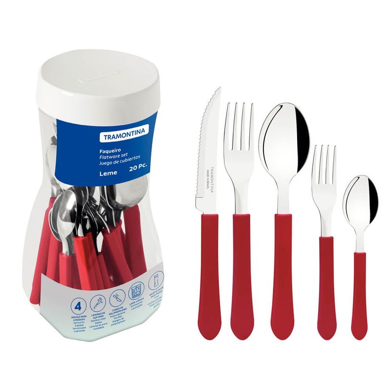 O faqueiro Tramontina Leme com lâminas em aço inox e cabos de polipropileno preto 20 peças é a escolha certa para deixar suas refeições muito mais práticas e cheias de estilo! As peças que compõem o jogo são produzidas com lâminas em aço inox e cabos de polipropileno que contam com resistência e durabilidade para estarem presentes em todos os momentos do seu dia. Sua utilização é muito agradável e você garante um manuseio seguro, pois seus cabos tem formato anatômico e encaixam-se perfeitamente a sua mão. As peças ainda são fáceis de limpar e podem ir à máquina de lavar louças, facilitando seu dia a dia na cozinha!