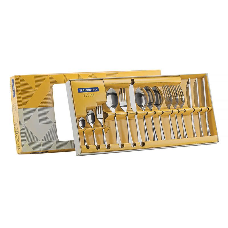 Com o Faqueiro Tramontina Havana com Facas para Churrasco em Aço Inox 24 Peças sua mesa ficará muito mais bonita e elegante! As peças que compõem o jogo são produzidas em aço inox, sendo altamente resistentes e duráveis, além de serem super charmosas, devido ao acabamento em alto brilho. Elas ainda podem ser lavadas na máquina de lavar louças, sem risco de comprometer suas características originais. A melhor opção para quem gosta quer uma mesa linda e completa!