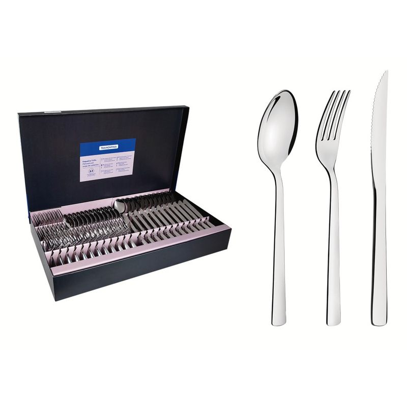 Para um bom churrasco não pode faltar o Faqueiro Tramontina em Aço Inox com Facas para Churrasco Acabamento Brilho 72 Peças da linha Oslo. Um jogo especial feito para quem adora confraternizar em grande estilo. Acompanha colheres com bojo em formato simétrico e bordas cuidadosamente arredondadas. Garfos com dentes polidos na parte interna, com formato apropriado para a boca e bordas arredondadas para proporcionar maior conforto no uso. Facas totalmente temperadas, que garantem maior durabilidade no fio de corte e maior resistência à corrosão, e por suas características de temperabilidade, não riscam as porcelanas. Oferece um serviço para até 12 pessoas. Peças produzidas em aço inox, altamente duráveis, com um acabamento em brilho e belíssimos detalhes no cabo.