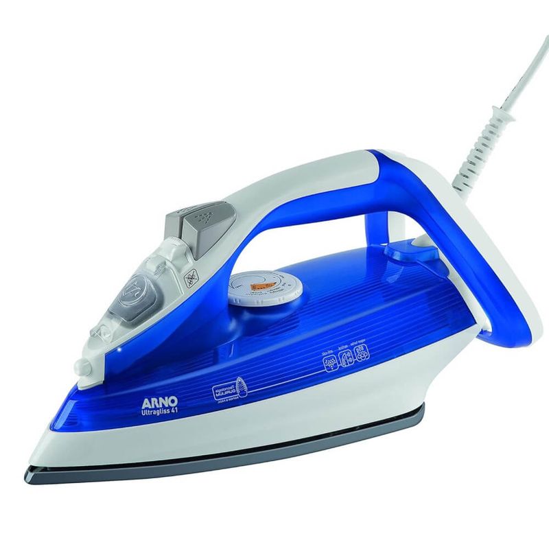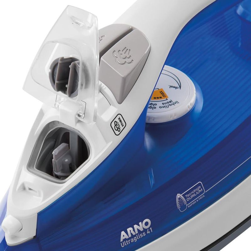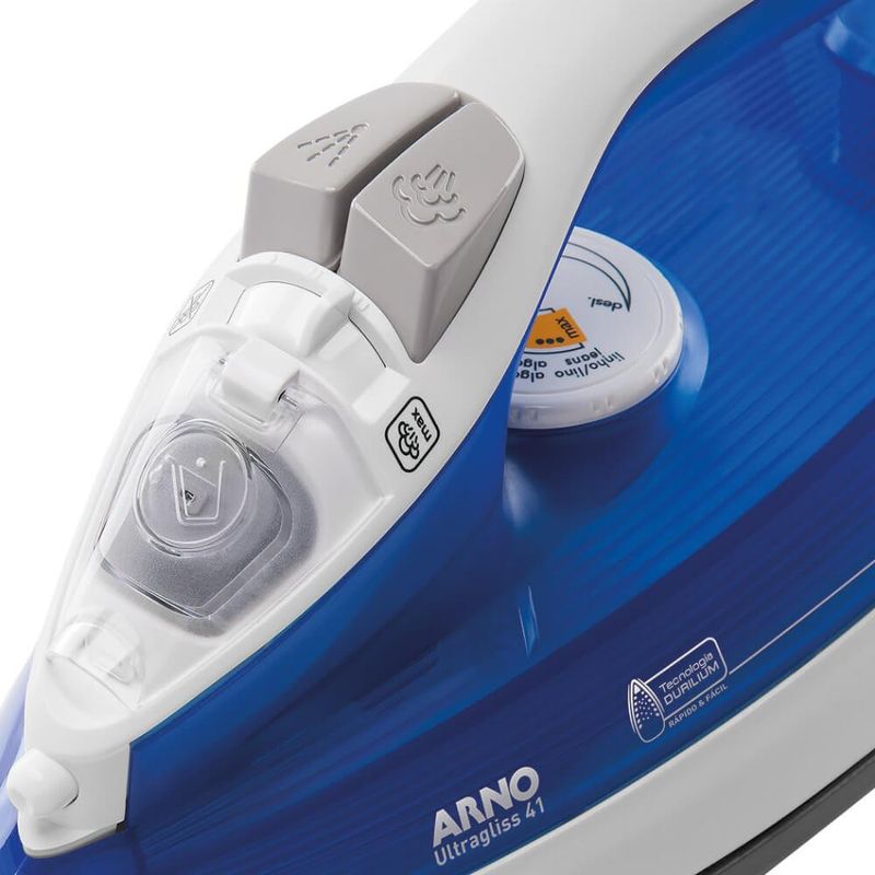 O Ferro a Vapor Ultragliss da Arno combina ótima performance e deslizamento com altíssima resistência a arranhões! Graças a sua base de Durilium, o Ultragliss 41 da Arno passa mais rápido e ainda evita que o tecido grude e fique com brilho. Conta com 64 saídas de vapor e 85g/min de vapor extra para desamassar os vincos mais difíceis! Seu vapor funciona também na vertical, podendo ser utilizado para desamassar roupas diretamente do cabide. O Ferro a Vapor Ultragliss da Arno possui sistema de auto-limpeza: elimina resíduos do reservatório. Além disso, conta também com base superestável com enrolador de cordão - mais segurança e praticidade - e borda salva botões - mais fácil de passar e protege os botões. Tenha a melhor performance e resistência na hora de passar suas roupas com o Ferro a Vapor Ultragliss da Arno