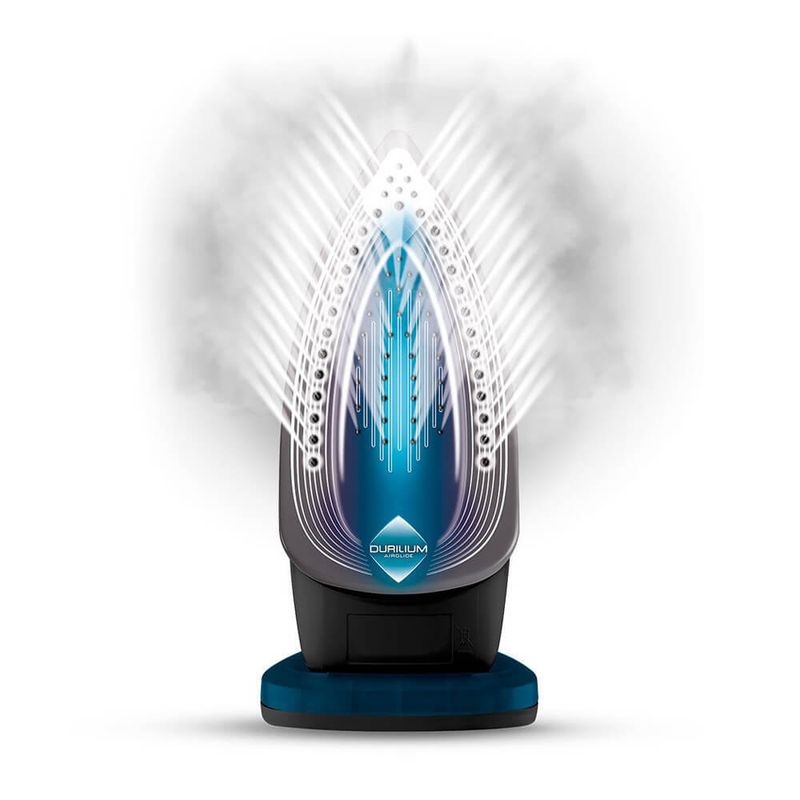 A base Durilium Airglide é o grande diferencial, oferecendo um deslizamento impecável sobre todos os tecidos, tornando o ato de passar muito mais leve e rápido. Além disso, ela possui alta resistência a riscos e arranhões, assegurando a durabilidade do seu ferro. Com 64 saídas de vapor e a função Vapor Turbo de 85 g/min, ele penetra profundamente nas fibras, eliminando amassados rapidamente.
