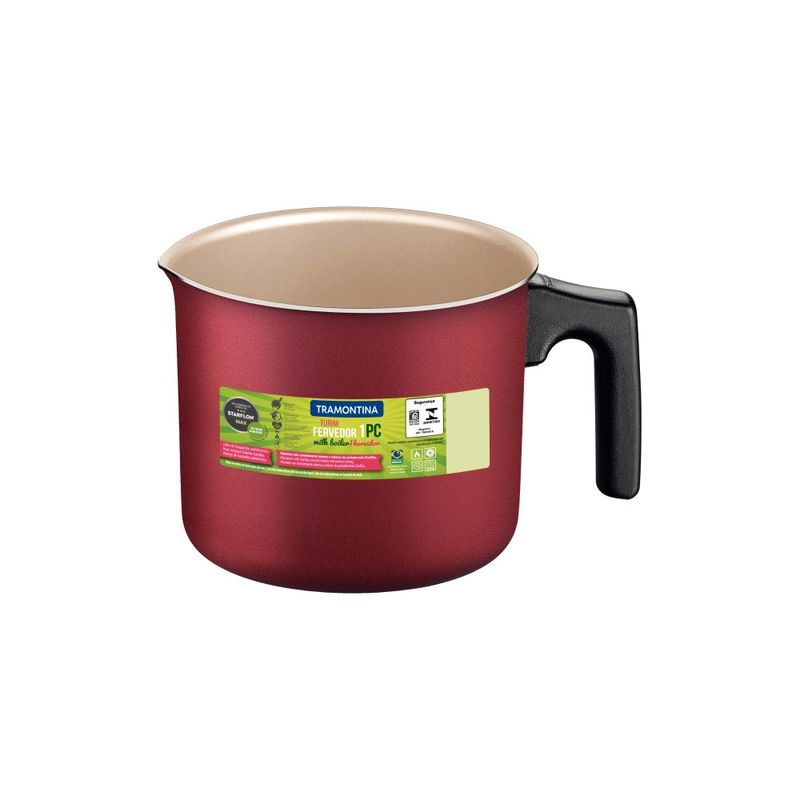 O fervedor Tramontina Turim em alumínio com revestimento interno e externo em antiaderente Starflon Max vermelho 14 centímetros de diâmetro 1,7 litros é a escolha certa para aquecer água para seu chá ou café.