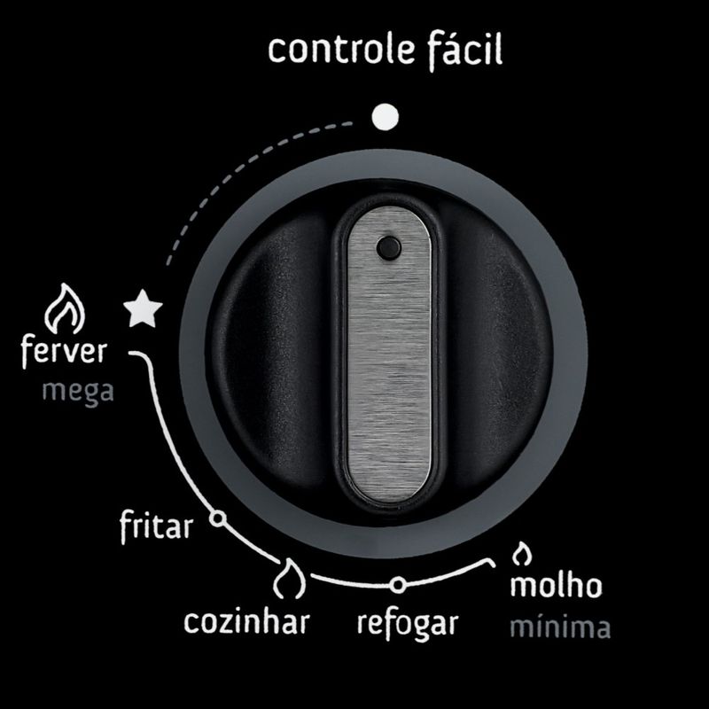 São 5 funções que ajustam a potência para você chegar ao resultado ideal com mais praticidade. Você pode ferver, fritar, cozinhar, refogar e preparar molhos.