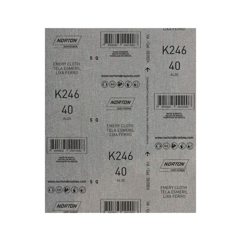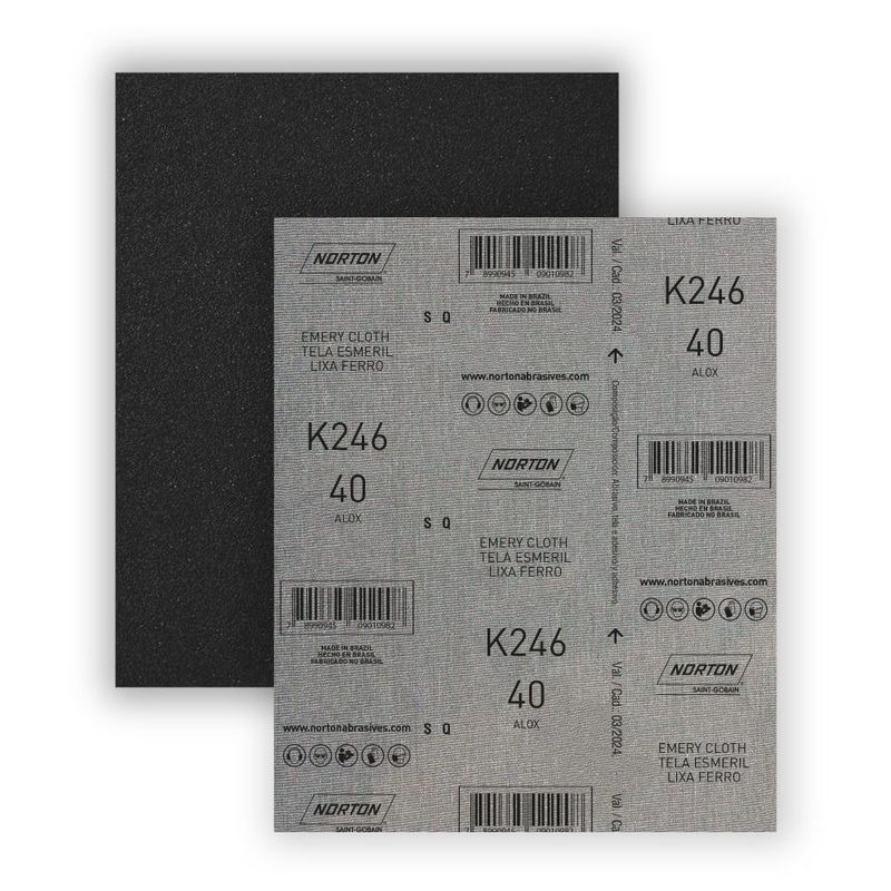 A folha de lixa ferro K246 é uma lixa de pano com grãos de Óxido de Alumínio Marrom indicada para o lixamento de metais e em operações de maior remoção de material, nas quais são necessárias uma lixa com maior resistência.