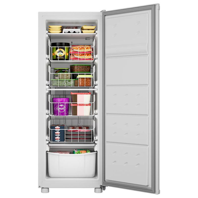 O Freezer Vertical Consul CVU18 possui capacidade para 121L e cabe perfeitamente na sua cozinha, com lugar certo e compartimento de sobra para tudo o que você quiser conservar por mais tempo. Conta com compartimento para gelo e picolé, prateleira para pratos prontos e gavetão de frutos do mar.