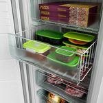 Melhor organização e visualização dos alimentos. Além de deixar tudo organizado, você consegue ver o que está guardado lá dentro sem nem abrir a gaveta.