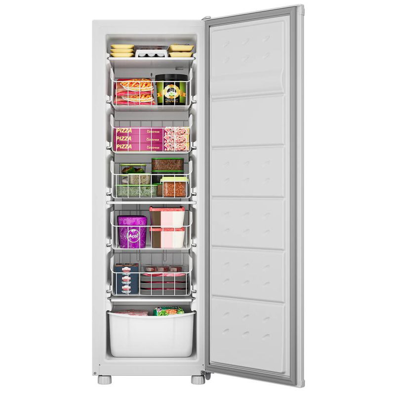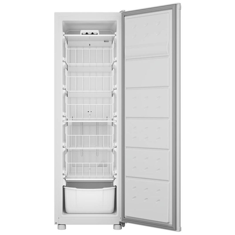 O Freezer Vertical Consul CVU20 possui capacidade para 142L e cabe perfeitamente na sua cozinha, com lugar certo e compartimento de sobra para tudo o que você quiser conservar por mais tempo. Conta com compartimento para gelo e picolé, gavetão de frutos do mar e cestos deslizantes.