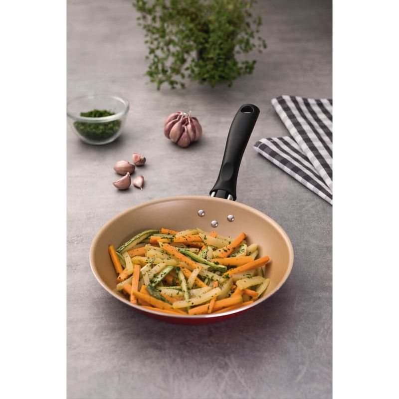 Para garantir refeições muito mais práticas e saborosas, a frigideira Tramontina Turim em alumínio com revestimento interno e externo em antiaderente Starflon Max vermelha 20 centímetros de diâmetro 0,8 litros é uma ótima escolha. Produzida em alumínio com espessura de 1,2 milímetros e com revestimento interno e externo em antiaderente Starflon Max, ela vai garantir que os alimentos não grudem em sua superfície, facilidade na limpeza, maior durabilidade e não é prejudicial a saúde. Seu cabo em baquelite garante maior segurança durante o manuseio, pois não aquece. Uma frigideira que pode ir à máquina de lavar louças, otimizando e facilitando o seu dia!