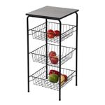 É uma fruteira de três cestos que acomoda frutas, legumes e no seu tampo pode acomodar utensílios domésticos.