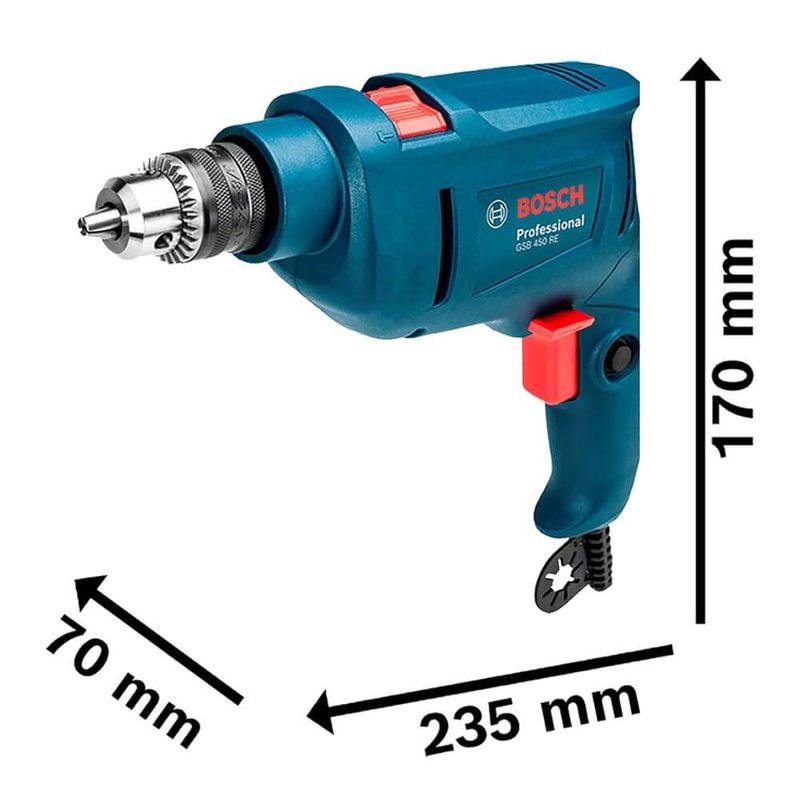 A Furadeira de Impacto Bosch GSB 450 RE, com potência de 450 W, é a melhor escolha para quem busca a confiança da marca Bosch por um preço arrasador. Mais confortável, com apenas 1,2 Kg, perfura alvenaria, madeira e metal, com e sem impacto, graças ao botão comutador. Realize, também, parafusamentos através da função de reversão e faça trabalhos contínuos com o auxílio do botão trava. Tudo isso com 1 ano de garantia e suporte da Assistência Técnica Bosch.