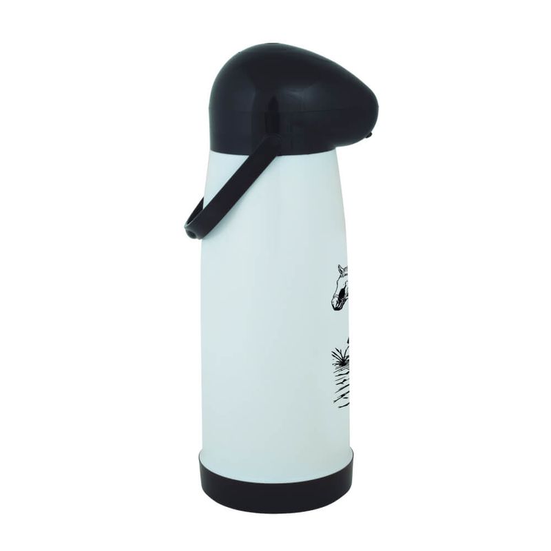 Estampadas com a figura do Gaúcho tradicionalmente pilchado junto de seu inseparável companheiro, o cavalo, as Garrafas Pressão Farroupilha foram desenvolvidas para esse povo que tem orgulho da sua cultura e não dispensa um bom chimarrão. Com capacidade para 1,9 Litros, tem sistema de bombeamento superior devido a presença do anel de vedação que melhora a pressão e sistema corta pingo. O novo design da cabeça a torna mais anatômica, permitindo servir a bebida de forma confortável e segura. O novo acabamento evita o acúmulo de sujeiras. Suas peças plásticas são fabricadas em polipropileno virgem atóxico e sua ampola é de vidro, proporcionando mais proteção térmica e perfeito acabamento. A Garrafa Pressão Farroupilha mantém sua água na temperatura perfeita e acompanha sua tradição por todos os lugares!Todas as garrafas térmicas e os bules da Mor são livres de BPA atendem às especificações estabelecidas pela NBR 13.282 da ABNT, ou seja, garantia total de qualidade!