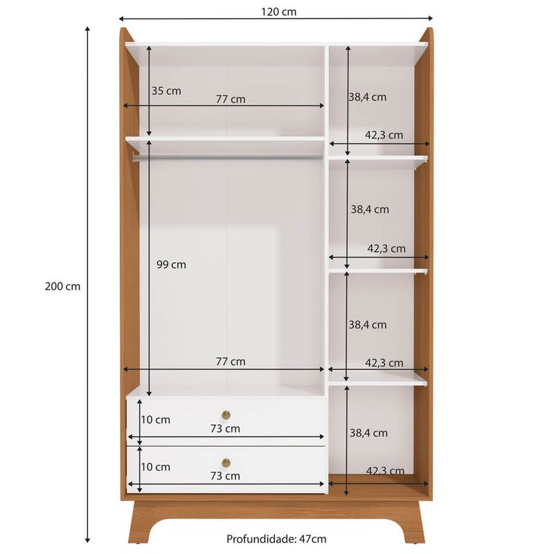 Dimensões (AxLxP): 200 x 120 x 47 cm