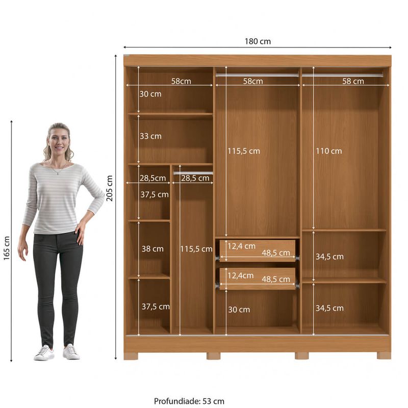 Dimensões (AxLxP): 205 x 180 x 53 cm
