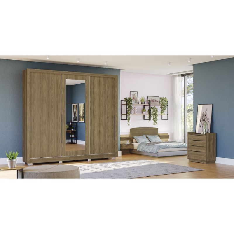 Com a elegante cor Nogueira, que remete à beleza da madeira escura, ele se integra harmoniosamente a diversos estilos de decoração, criando um ambiente acolhedor e requintado. Suas três portas de correr otimizam o espaço, sendo ideais para quartos com área de circulação reduzida. Uma das portas conta com um espelho elegante, que além de funcional, contribui para ampliar visualmente o ambiente.