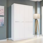 Com Dimensões de: 135 x 212 x 47 cm, este guarda-roupa otimiza seu espaço com maestria, proporcionando uma organização exemplar para suas roupas e acessórios. As quatro portas de bater garantem acesso total e um visual clean, com a facilidade do manuseio tradicional. Os cabideiros Metálicos e as corrediças Metálicas asseguram durabilidade e um deslize suave, contribuindo para o conforto no uso.