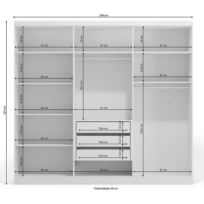 Dimensões (LxAxP): 249 x 227 x 50 cm