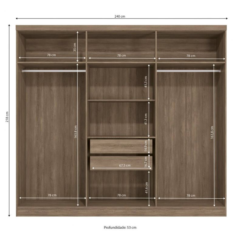 Dimensões (AxLxP): 218 x 240 x 53 cm