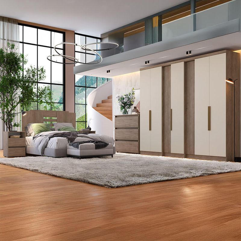 O Roupeiro THB Selecto é uma opção moderna e funcional, produzido com materiais de alta qualidade, garantindo durabilidade e acabamento superior. Com excelente aproveitamento interno, oferece: 4 gavetas internas espaçosas, ideais para organização com trilho telescópico; Dimensões: 2,50m de largura x 2,33m de altura x 0,55m de profundidade, perfeito para diversos ambientes; Design prático e elegante, adequado para otimizar o espaço e manter tudo em ordem. Uma escolha que combina estética e funcionalidade para o seu quarto!