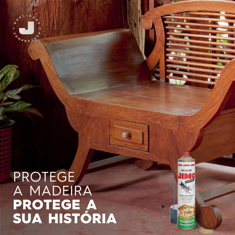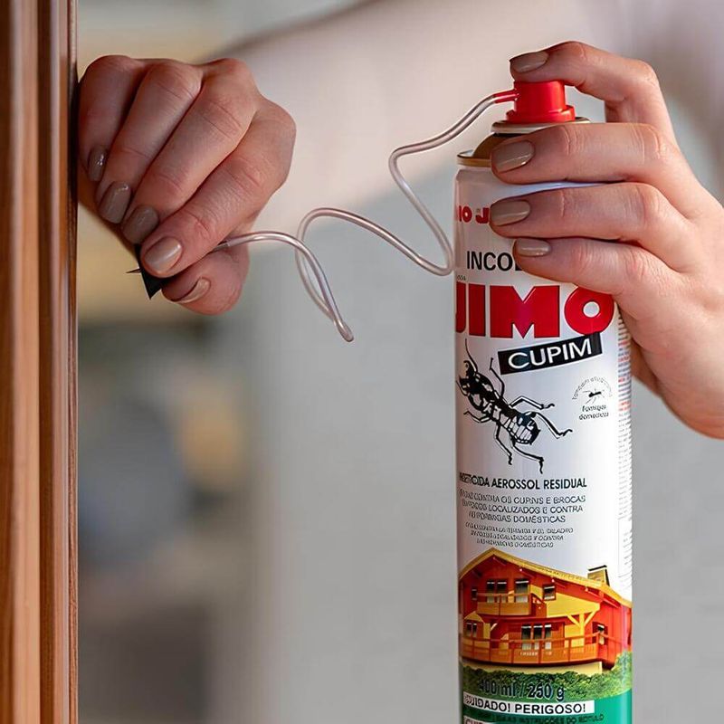 JIMO Cupim Aerossol é um inseticida pronto para uso, que combate cupins e brocas em madeiras. Ideal para focos localizados, pequenas peças ou madeira de difícil remoção do acabamento. Também eficaz contra formigas domésticas, geralmente escondidas em frestas e fendas.