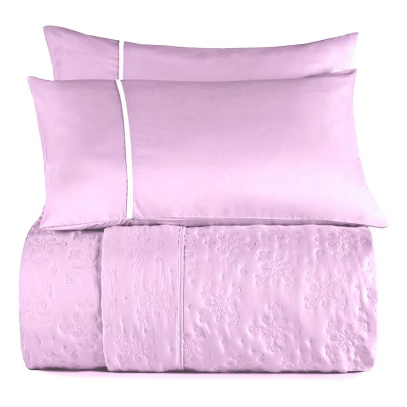 Doce, delicado e convidativo, o Jogo de Colcha Casal 3 peças Sweet Lilás 4.1761 da Altenburg é perfeito para quem deseja criar um refúgio de tranquilidade e romantismo no quarto.
