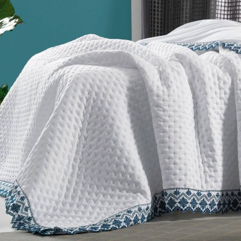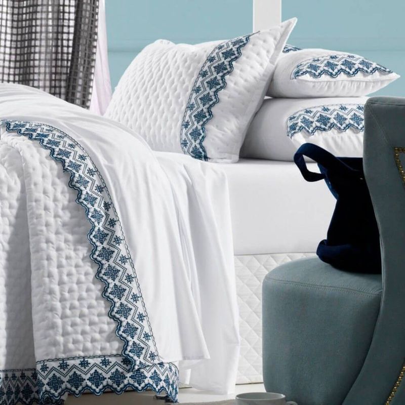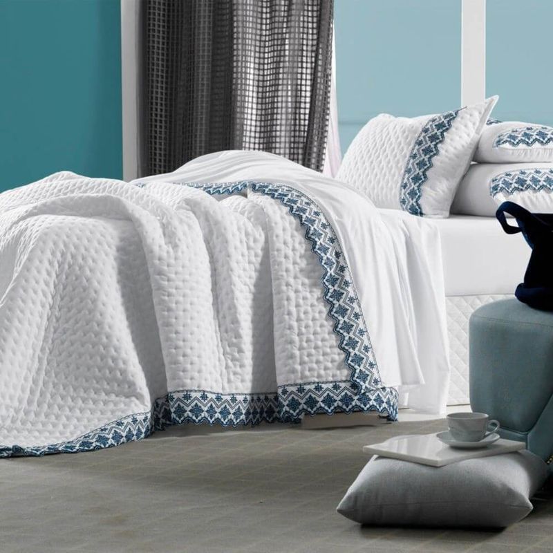 As delicadezas da renda aliada ao toque aveludado do tecido e a tecnologia de última geração do matelassado sem costura vão deixar o ambiente do quarto refinado e super aconchegante. Confeccionado em tecido 100% poliéster de última geração com toque aveludado e maciez indescritível, o Jogo de Colcha Provence Azul Noite conta com aplicação de renda em tom azul em três lados da Colcha e em um lado do Porta Travesseiro para deixar a decoração do seu quarto incrível.