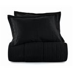 Especialmente desenvolvido para camas tamanho Queen, este conjunto é composto por 3 peças essenciais: 1 colcha e 2 porta travesseiros. A cor preta confere um visual impactante e contemporâneo, sinônimo de requinte e versatilidade para a decoração do seu ambiente de descanso.