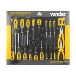 • 18 bits em aço cromo vanádio encaixe 1/4", sendo, 4 fenda (3 mm, 4 mm, 5 mm e 6 mm), 4 phillips (PH0, PH1, PH2 e PH3), 4 pozidrive (PZ0, PZ1, PZ2 e PZ3) e 6 hexalobular (T10, T15, T20, T25, T27 e T30)