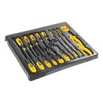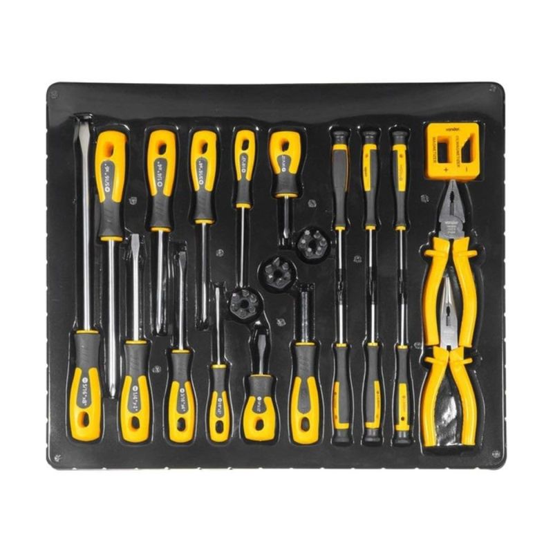 • 05 chaves de fenda em aço cromo vanádio (1/8" x 3", 3/16" x 4", 1/4" x 1.1/2", 1 /4" x 4" e 5/16" x 8")