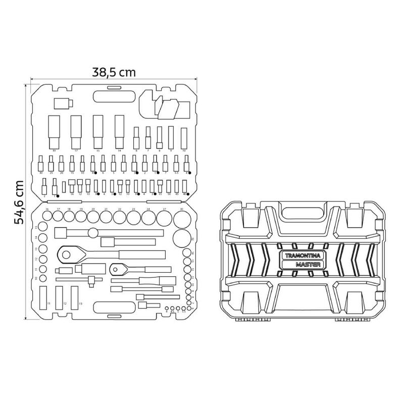 O Jogo de Ferramentas 99 Peças Tramontina Master reúne tudo o que você precisa para reparos com agilidade e precisão. Fabricado em aço cromo vanádio e aço S2, conta com catracas, soquetes e chaves variadas para diferentes aplicações. Compacto e bem-organizado, é fácil de transportar e ideal para quem busca praticidade. Tramontina Master: seu parceiro completo para qualquer desafio!