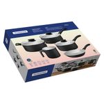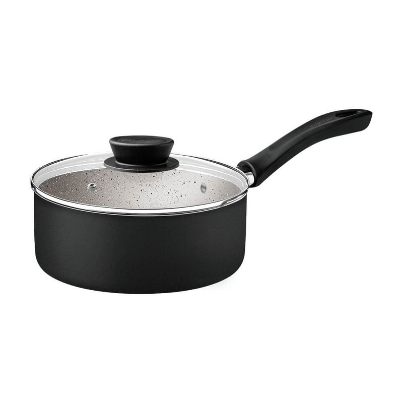 Aprimore sua cozinha com o jogo de panelas Tramontina Linz em alumínio com revestimento interno e externo em antiaderente Starflon Max preto 5 peças. Essenciais para quem não abre mão da funcionalidade na cozinha, este jogo tem peças que evitam que os alimentos grudem, mesmo cozinhando de maneira rápida e uniforme. Tudo isso, graças a produção em alumínio com revestimento interno e externo e Starflon Max. As tampas de vidro temperado com bordas de aço inox permitem acompanhar o preparo com segurança, e os cabos e alças de baquelite antitérmico, junto com os pegadores de nylon, oferecem conforto e segurança no manuseio. Além de todas essas características, o jogo pode ir em fogões a gás, elétricos e vitrocerâmicos, é lavável em máquina de lavar louças, e proporcionará toda a praticidade ao seu dia a dia na cozinha!