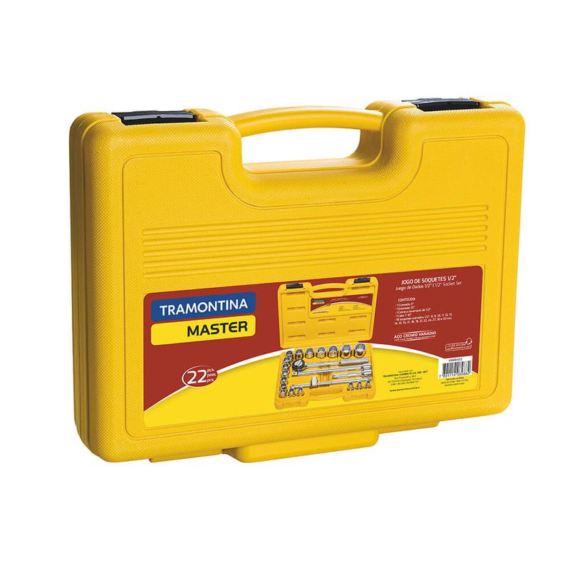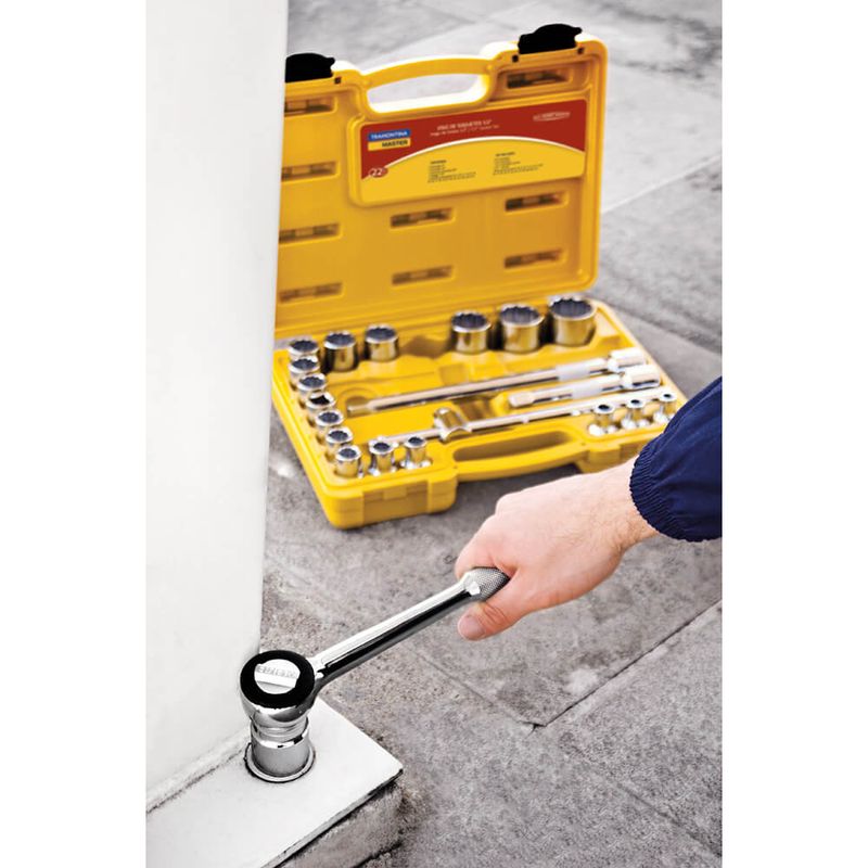 O Jogo de Soquetes Estriados encaixe 1/2 polegada Tramontina em aço cromo vanádio com acabamento cromado e maleta 22 peças é um kit completo para você ter sempre à mão. São 22 soquetes estriados que se adaptam às mais diversas necessidades. Com encaixe de 1/2 polegada, as peças possuem tamanhos diferenciados e são produzidas em aço cromo vanádio com acabamento cromado. Um item indispensável para suas tarefas!