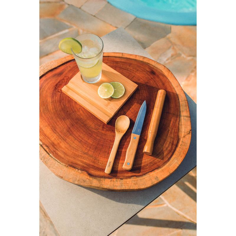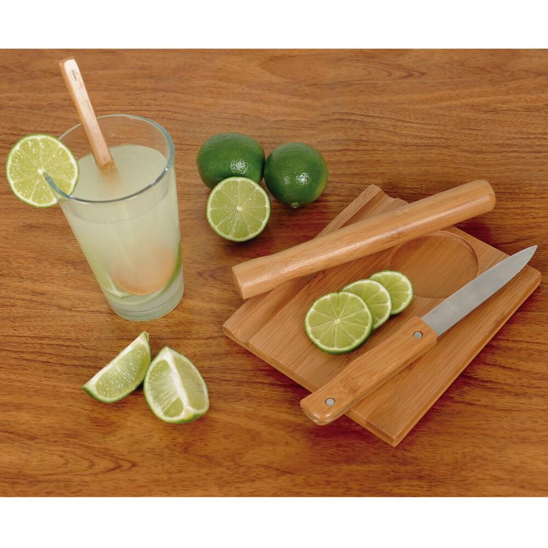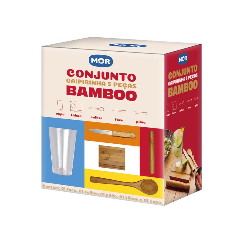 Um presente certeiro para quem adora assar um churrasco degustando um bom aperitivo, o Conjunto Caipirinha 5 Peças Bamboo vai agradar em cheio! Perfeito pra acompanhar os almoços do fim de semana, esse conjunto vem completo com copo de vidro de 500ml, tábua, pilão, colher de bamboo, faca com cabo em bamboo e lâmina em aço inoxidável. Além de proporcionar um design rústico, o bamboo tem ação bactericida natural e como suas fibras não apresentam poros, não há acúmulo de resíduos. Ou seja, além de peças bonitas, são muito higiênicas!