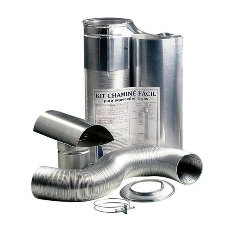 Kit composto por tubos e acessórios necessários para instalação de chaminé para aquecedores a gás