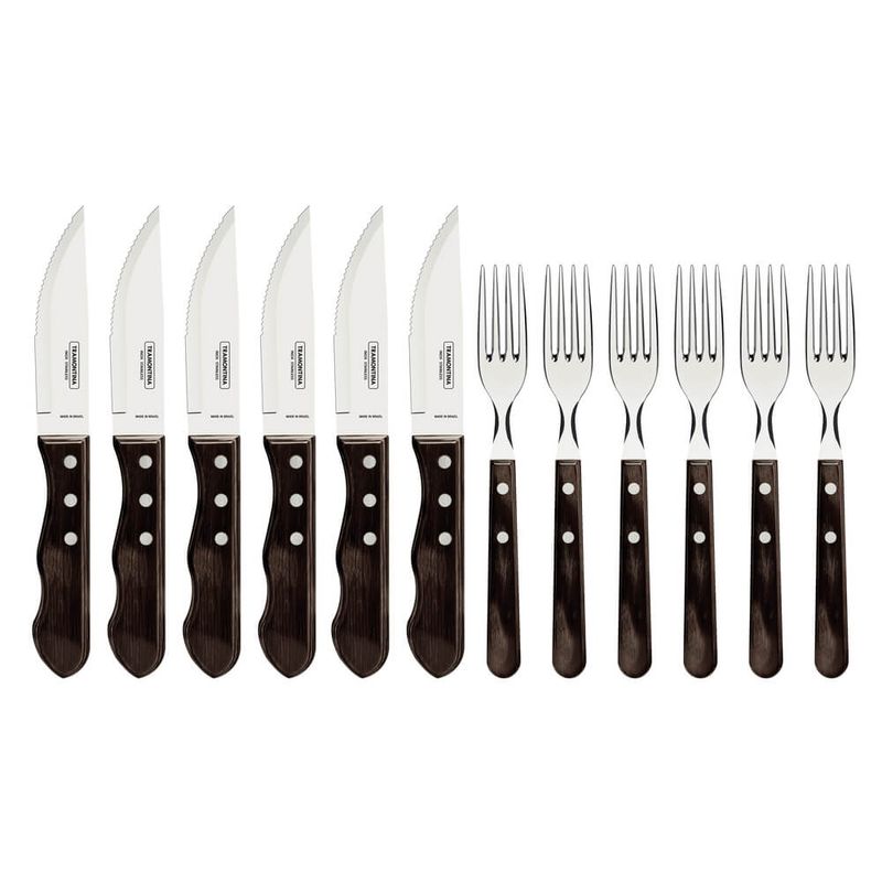 Seu churrasco nunca mais será o mesmo depois do jogo de talheres para churrasco jumbo Tramontina em aço inox com cabo castanho polywood 12 Peças. Um jogo da linha Churrasco que possui peças com lâminas de aço inox, altamente duráveis. Os cabos de madeira tratada Polywood, que proporcionam um design único para a mesa, além de serem resistentes à impactos e altas temperaturas. As facas oferecem um corte prático e sem esforço, tornando o momento de saborear um bom churrasco ainda melhor. A garantia que todos os seus convidados sairão satisfeitos.
