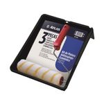 Kit de pintura com 3 peças contém: Bandeja de pintura (1523), garfo com bucha de retenção (330/23SR) e rolo poliéster antirespingo econômico de 23 cm (773/10).