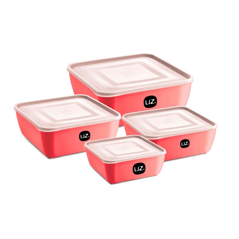 Kit Potes Quadrado Coral UZ298 UZ Utilidades: Organização e Versatilidade para Sua Cozinha