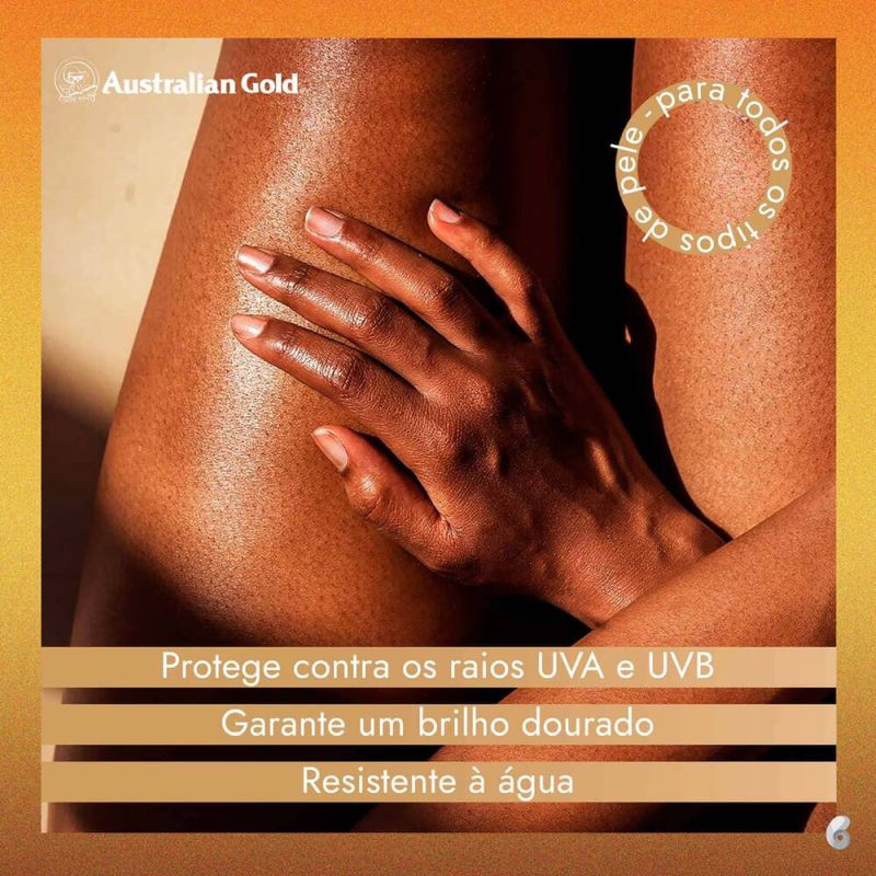 Agite bem antes de usar. Com a pele seca, aplique uniformemente no corpo e finalize com um protetor solar corporal Australian Gold de sua escolha. Reaplique sempre que desejar.Somente para uso externo. Evite contato com os olhos. Descontinue o uso se ocorrer irritação na pele. Manter fora do alcance de crianças. Atenção: Não protege contra a ação solar. Este produto não é um protetor solar. Usar protetor solar com FPS adequado ao seu tipo de pele. Dermatologicamente testado.