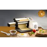Com um motor potente e cilindros de 28 cm de comprimento e 5,7 cm de diâmetro, ele lamina impressionantes 13 metros de massa por minuto. Os raspadores integrados garantem que a massa não grude, facilitando o processo. A abertura regulável entre os rolos, de 0 mm até 10 mm, permite que você crie a espessura ideal para cada receita, ajustando com segurança e rapidez através dos manípulos em PP.