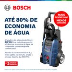 A lavadora de alta pressão Bosch GHP 220 possui 2100W, 220V e pressão máxima de 2200 psi. Conta com excelente desempenho e um peso de 17.8 kg, garantindo um trabalho rápido e ótimo nível de economia de água quando comparada a uma limpeza manual. Oferece alto desempenho na remoção de sujeira moderada com o motor de indução que proporciona vida útil prolongada e tempo de funcionamento otimizado. A dupla filtragem de água também é ideal para reter de maneira eficiente as impurezas da água, evitando que água suja chegue ao motor, proporcionando maior vida útil e evitando gastos com manutenção. A lavadora de alta pressão Bosch GHP 220 vem com acessórios incluídos que trazem mais flexibilidade na limpeza de diferentes superfícies e tipos de sujeira, além de rodas resistentes e cabo telescópico em alumínio para melhor mobilidade em pisos acidentados e mais ergonomia. A lavadora de alta pressão Bosch GHP 220 possui 1 Pistola e lança de alta pressão, 1 bico de jato variável, 1 bico de jato rotativo (turbo), 1 filtro externo, 1 adaptador de mangueira de engate rápido e 1 mangueira de 8 metros. Garantia 1 ano Bosch + 1 ano adicional fazendo o cadastro no aplicativo BeConnected.