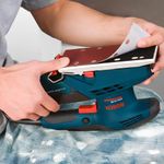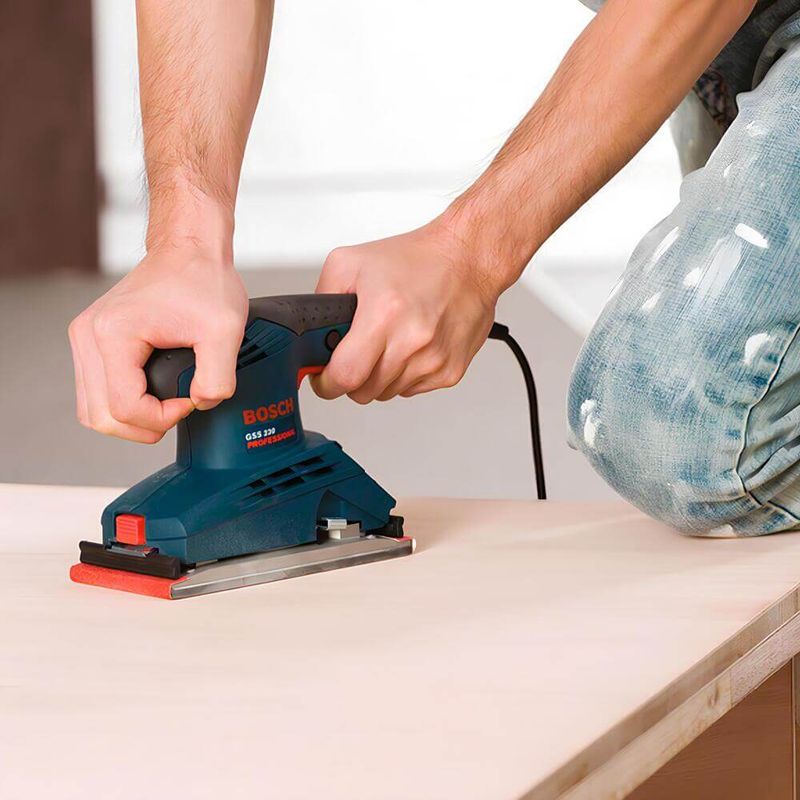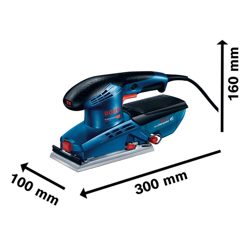A Lixadeira orbital Bosch GSS 23 AE de 220 V é a ferramenta desenvolvida para trabalhos de lixamentos que exijam qualidade de acabamento, graças a o seu motor de 160 Watts que esta sempre pronto para o trabalho, a orbita de lixamento de diâmetro de 2 milímetros garante a equação perfeita entre retirada de material e acabamento final, para que você possa realizar lixamentos em distintos materiais e obter acabamentos diferentes a lixadeira orbital GSS 23 AE tem regulagem eletrônica de oscilações por minuto e varia de 16000 a 24000 opm's e para que o operador da ferramenta possa trabalhar em um ambiente praticamente livre de poeira e garantir assim melhor qualidade do lixamento esta ferramenta possui uma ventoinha que em conjunto com a base perfurada realizam a extração do pó / poeira e direcionam o mesmo ao sistema filtragem e armazenamento da poeira gerada, (+ de 90% de retenção das impurezas no filtro). A fixação das folhas de lixa na base de material reforçado é feito através do sistema Easy-Fit (sistema de troca rápida e fácil da lixa), importante que a base tem as seguintes dimensões (93 milímetros x 185 milímetros) o que permite que uma folha de lixa convencional seja corta em 3 partes (93 x 230 milímetros) e utilizada - por este motivo esta ferramenta é conhecida como lixadeira de 1/3 de lixa, para garantir que mesmo com a utilização de lixas convencionais o sistema de aspiração seja eficiente a lixadeira é fornecida com uma base perfurado para ser utilizada na perfuração deste tipo de lixa. A lixadeira orbital GSS 23 AE.
