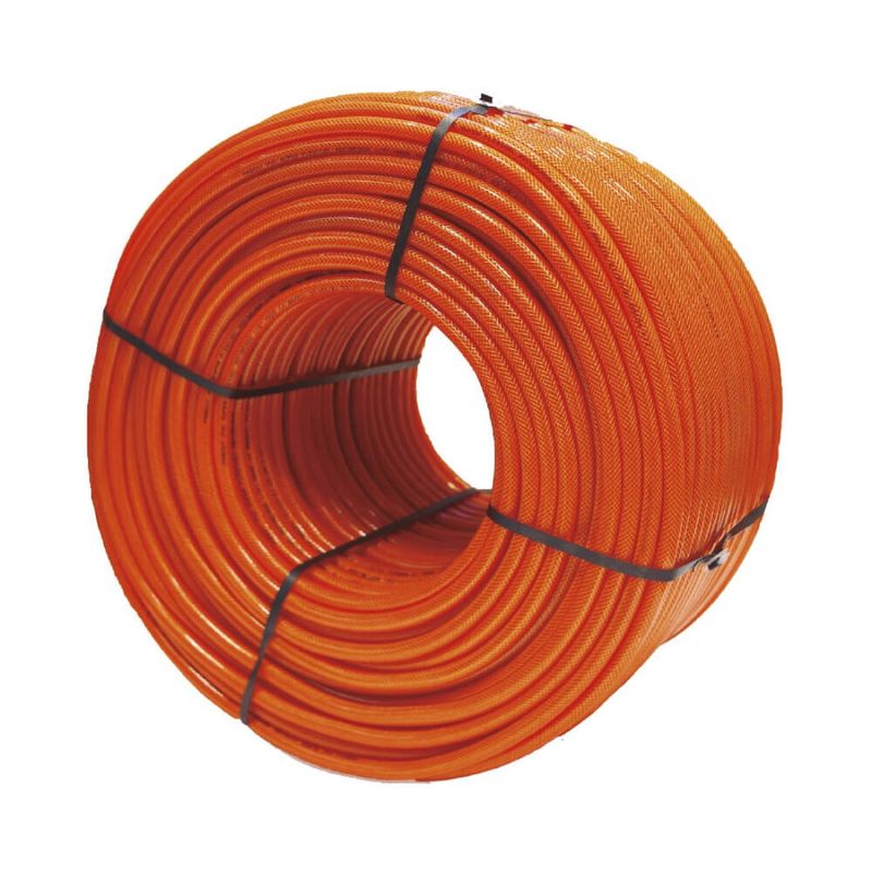 Produto fabricado com dupla camada de PVC e trançado com malha de poliéster, proporcionando maior resistência à pressão.