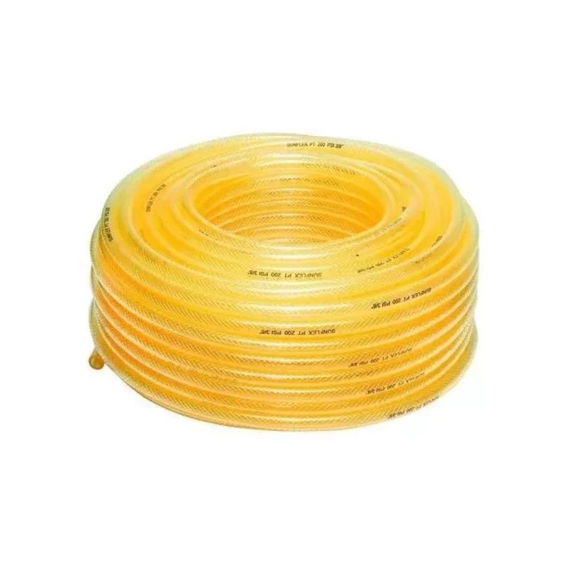 Produtos fabricados com duas camadas de PVC e trançado com malha de poliéster, proporcionando maior resistência à pressão.