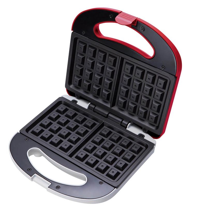 A máquina de waffle Cadence prepara dois waffles de uma só vez em poucos minutos. Conta com chapas antiaderentes que assam os dois lados do waffle por igual ao mesmo tempo, e ainda garantem muita facilidade na limpeza. Tem Leds indicadores de ligado e pronto para uso. O prático porta-fio traz muito mais praticidade na hora de guardar. Tem alça isotérmica com presilha, não esquenta e garante um fechamento por completo. Pés antiderrapantes que garantem maior segurança durante o prepare dos waffles. Prepara dois waffles em poucos minutos
