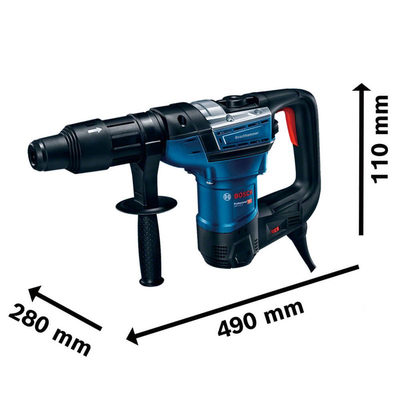 O martelete demolidor Bosch GBH 5-40D de 5Kg é indicado para perfurações e rompimentos em concreto, com grande capacidade de remoção de material. Possui motor de 1110W e conta com um formato ergonômico para um trabalho seguro, confortável e reduz a fagida ao final do dia. Traz o mandril de aperto rápido SDS-Max, que facilita na hora da troca de brocas, cinzéis e embreagem de segurança, para um trabalho mais seguro ao operador. Possui também 12 posições de cinzelamento e embreagem de segurança. Acompanha: 1 punho auxiliar, 1 maleta de transporte, 1 tubo de graxa, 1 pano para martelo e manual. Garantia 2 anos Bosch.