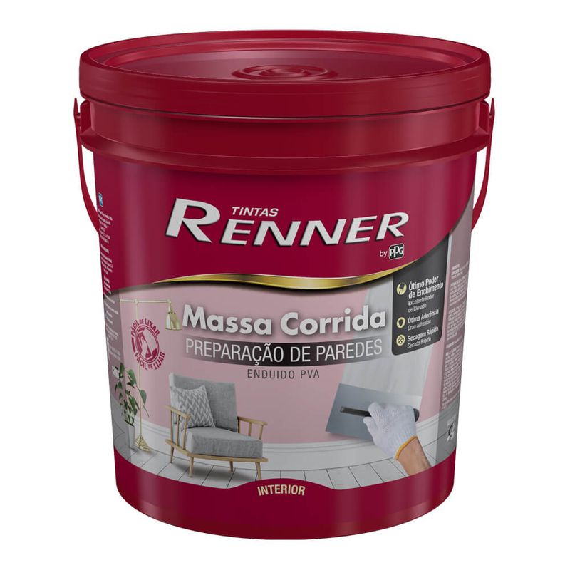 Massa corrida uniformiza, corrige e nivela pequenas imperfeições em paredes e tetos de reboco e concreto.