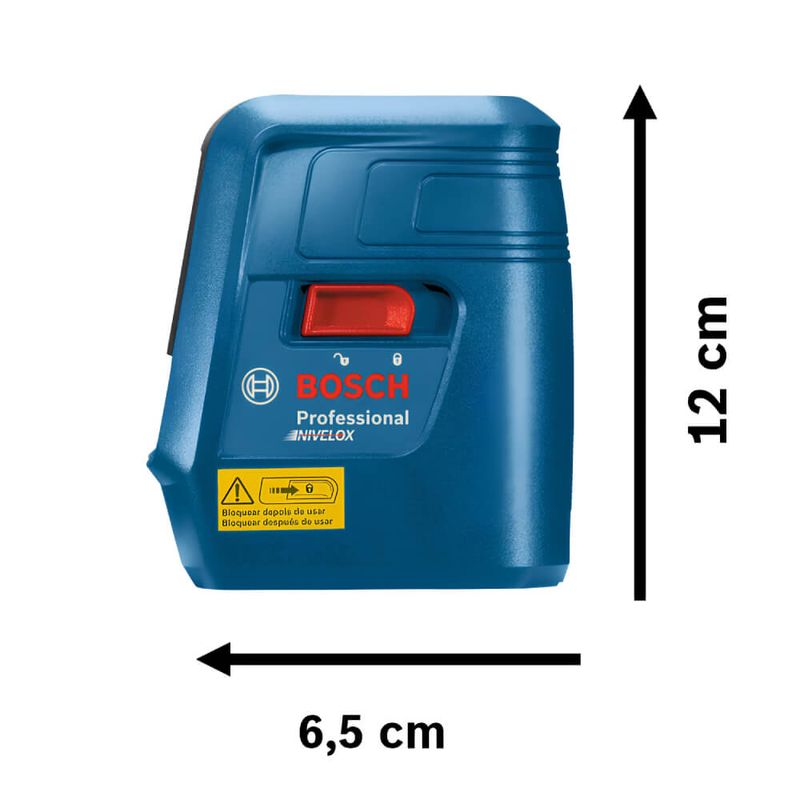 O nível laser de linhas Nivelox Bosch conta com laser compacto com 3 linhas, ideal para trabalhos versáteis no interior. Possui 1 linha cruzada e 1 vertical para múltiplas aplicações no interior, vem com interface simples com indicação LED para fácil utilização e sistema de pêndulo inteligente. Além disso, conta com uma trava de pêndulo que protege o produto da descalibração durante o transporte, o que aumenda sua vida útil. O nível laser de linhas é indicado para marcações precisas de ângulos de 90º entre paredes ou no chão.