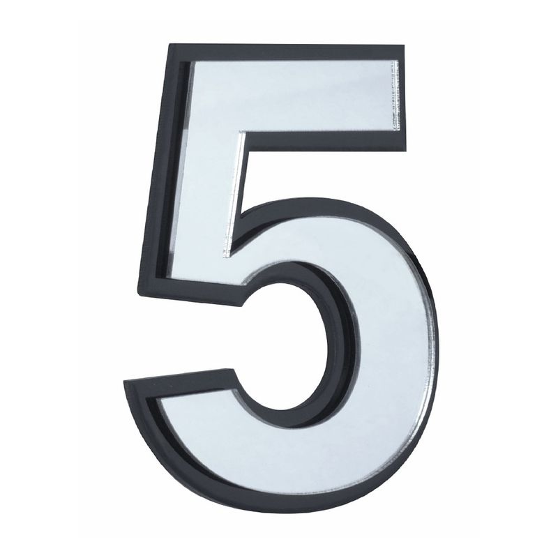 Número residencial em duas camadas de acrílico, uma preta e uma espelhada.